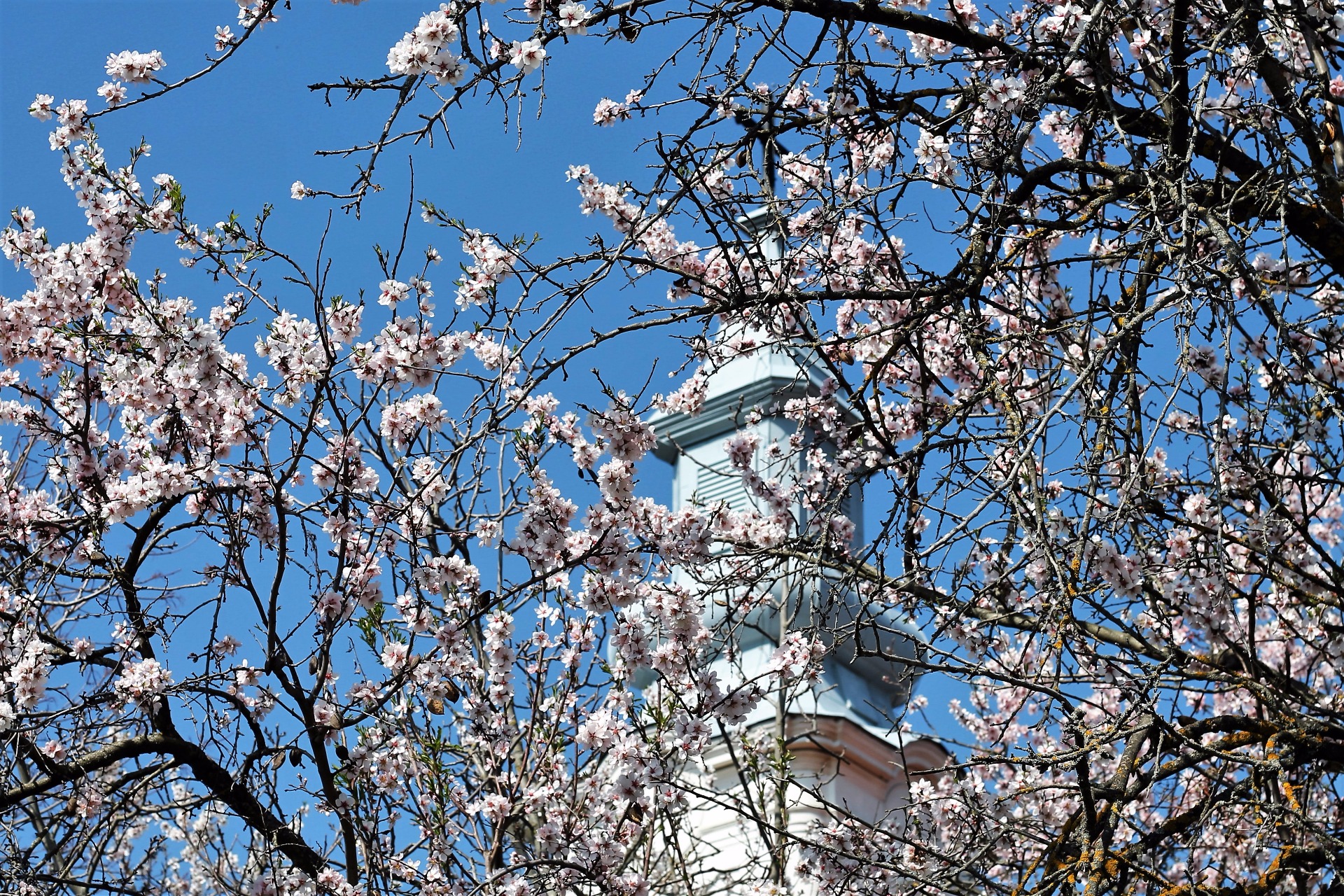Képzelj egy 2 utcából álló ősi falucskát, ahol csodaszép régi kis parasztházak, 2 nagy templom és valami leírhatatlan miliő van. Most a legjobbkor mentünk, mert épp mandula fa virágzás volt.